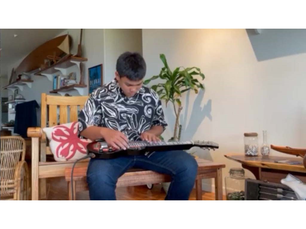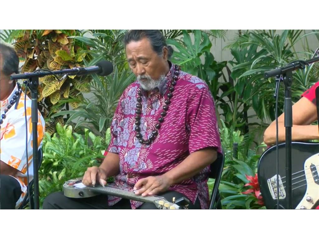 Kaʻiwa Ho, Maui steel guitar student of Ross Kaʻaʻa.Due to a previous football commitment, Kaʻiwa appeared on prerecorded video.