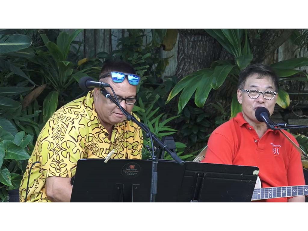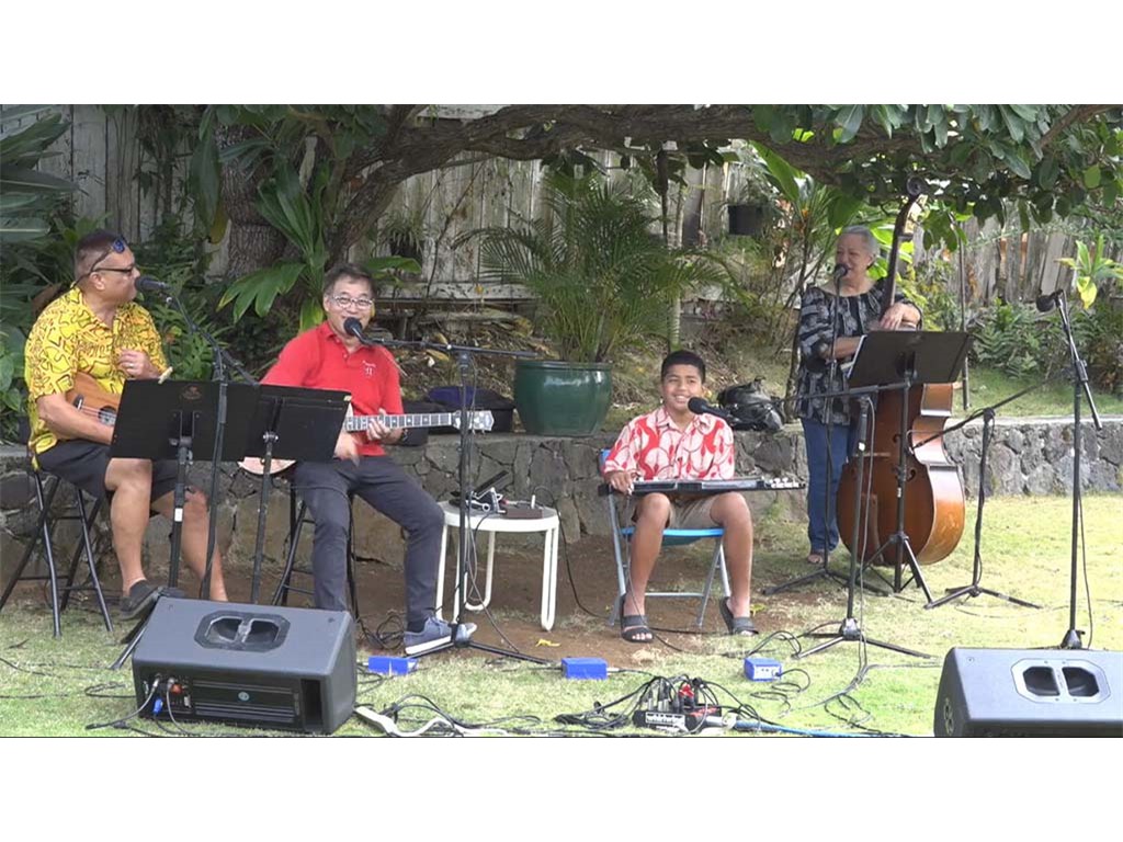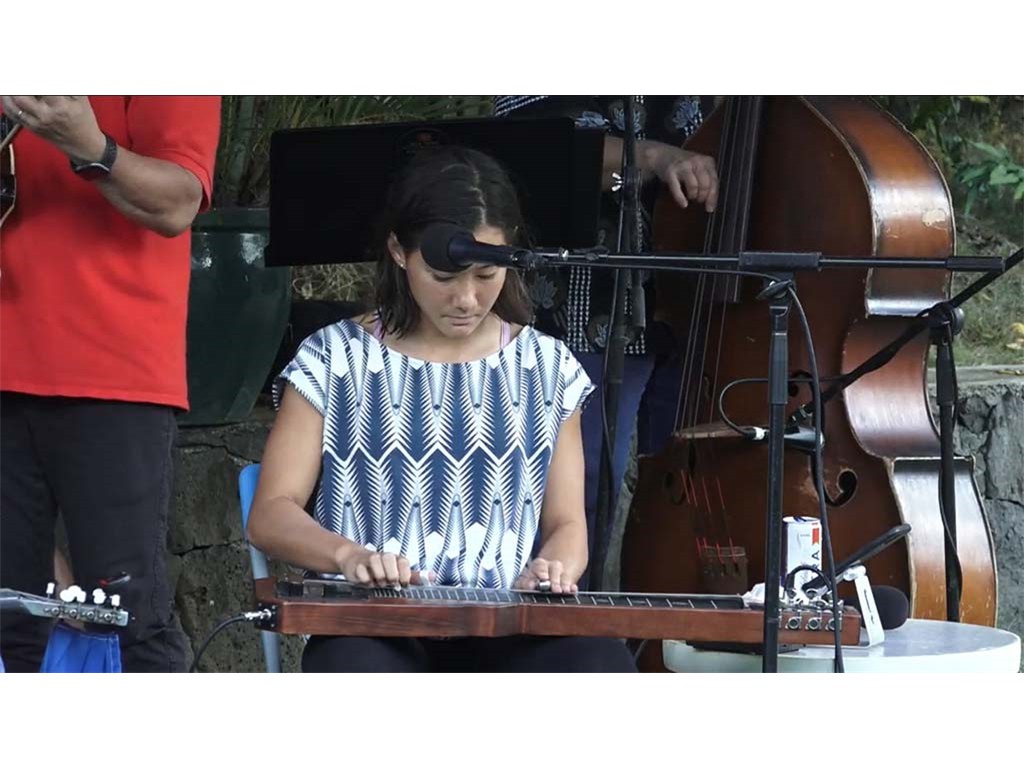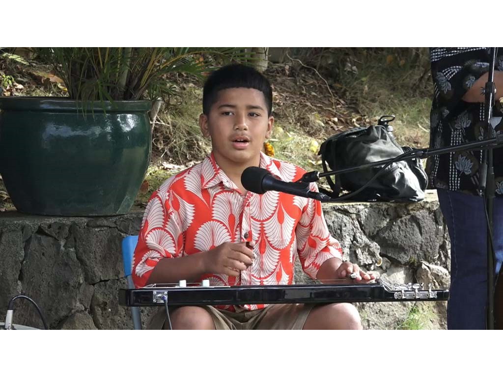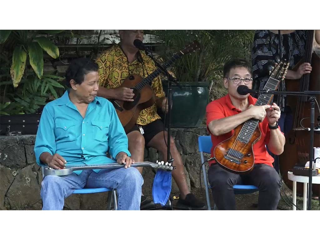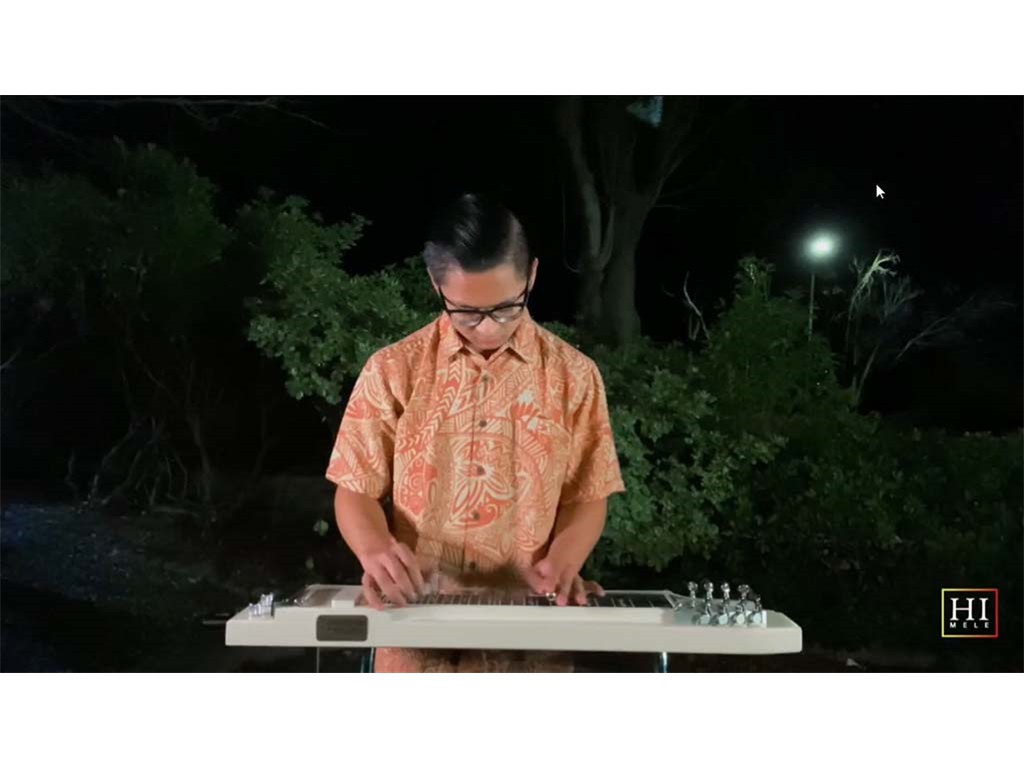 The Livestream Steel Guitar Saturday on October 16, 2021, featured live performances by NextGen Steel guitarists Enosa Lyman, Tai Misailidis, Pono Fernandez, Joey Misailidis, and Mālile Lyman with Alan Akaka on guitar, Kaipo Asing on ‘ukulele and Helene Woodward on upright bass. Prerecorded performances by NextGen steel guitarists Justin Firmeza and Ethan Goore were also included in the livestream. A steel guitar kanikapila jam session followed with Greg Sardinha, Bobby Ingano, and Alan Akaka on steel guitars, backed up by Kaipo Asing on guitar and Helene Woodward on upright bass.