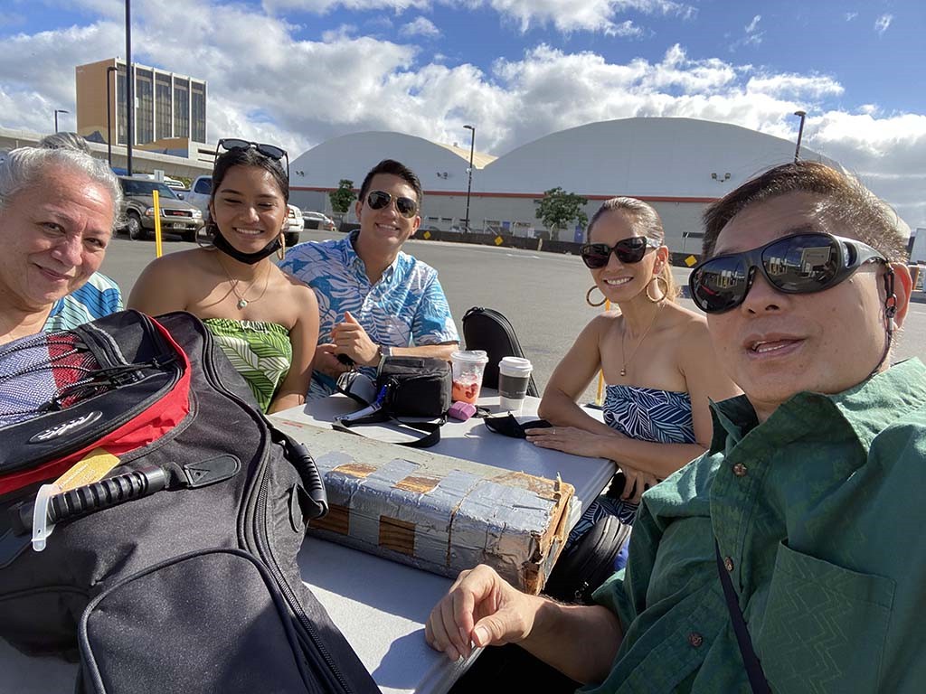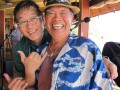 Alan with guests at Hiroʻs ʻOhana Grill.