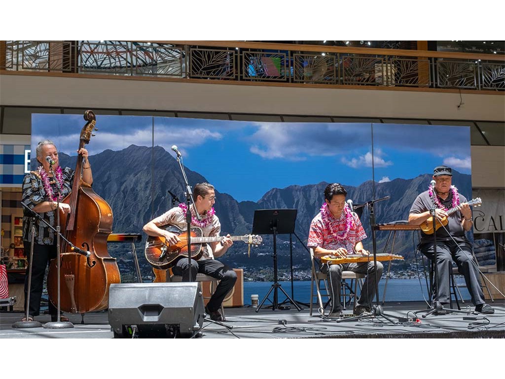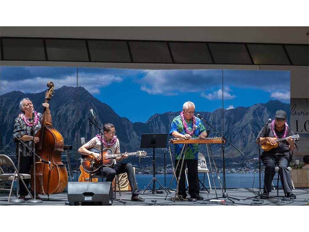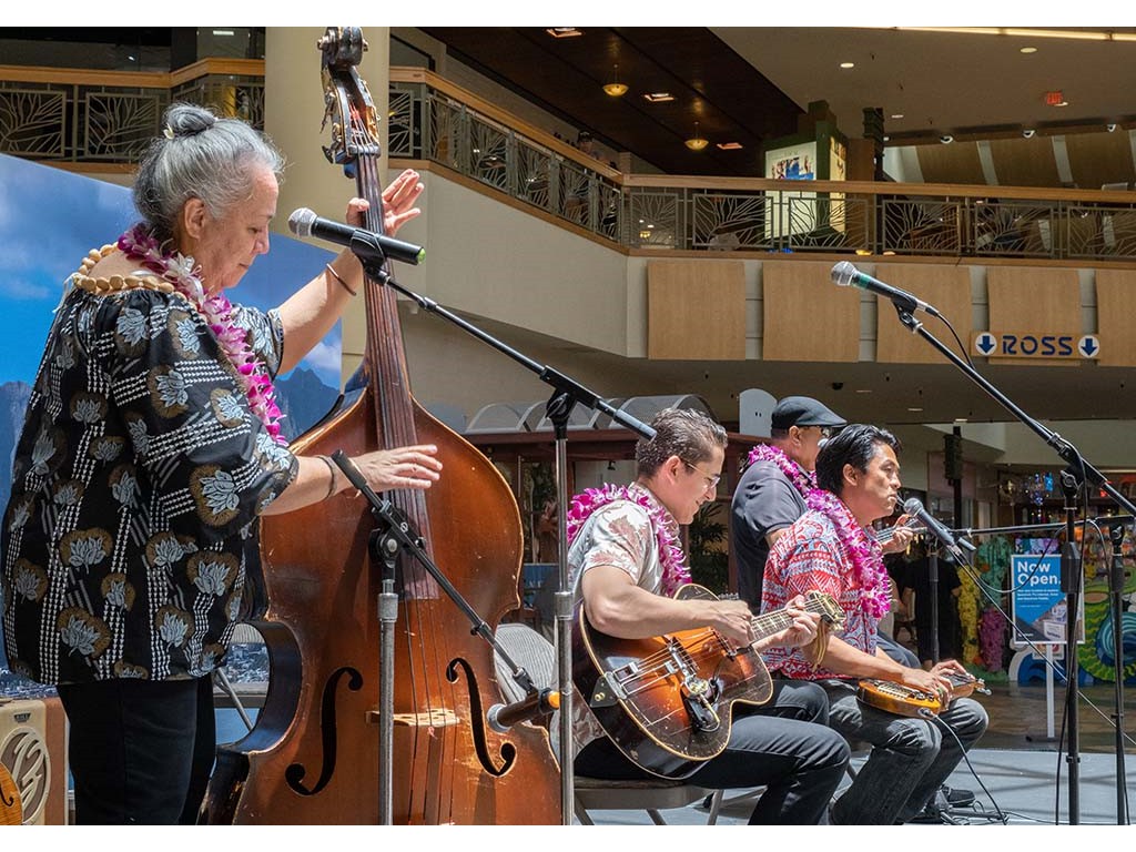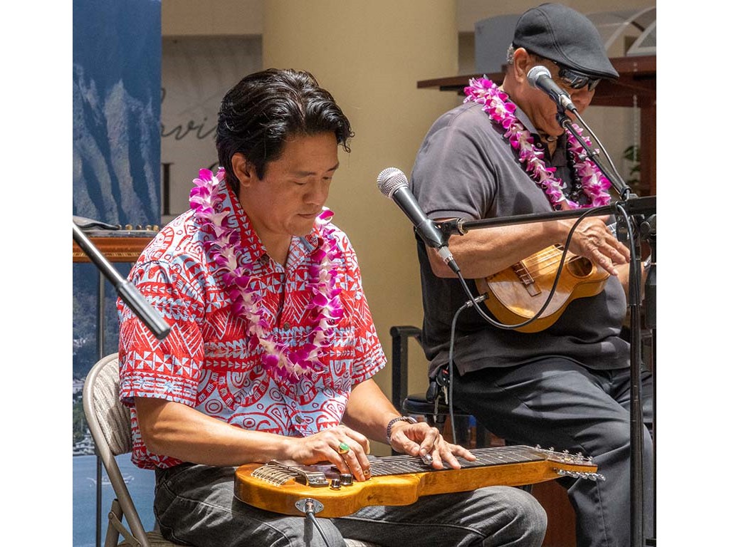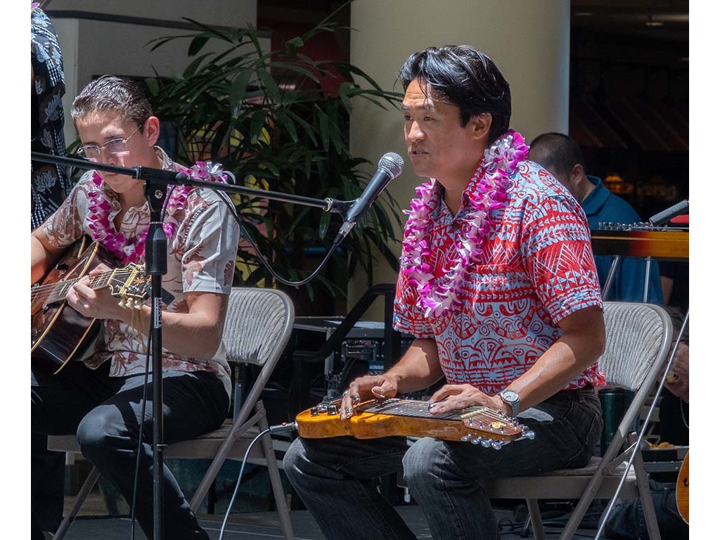 The Hawaiian Steel Guitar Festival at Windward Mall was held on Saturday, June 11, 2022, at the Windward Mall in Kane‘ohe. The festival featured steel guitarists Greg Sardinha and Po‘okela (Zachary Castro and Darrell Aquino), Kapono Lopes, Jeff Au Hoy, Steve Cheney, Joseph Zayac, Bobby Ingano, and Alan Akaka who also included NextGen steel guitarists Makamae Lyu-Napoleon, Isabella Bertelmann, Tai Misailidis, Pono Fernandez, and Joey Misailidis with Bobby Ingano assisting. Backup for some steel guitarists was provided by Helene Woodward on upright bass, Joseph Zayac on guitar, and Kaipo Asing on ‘ukulele.