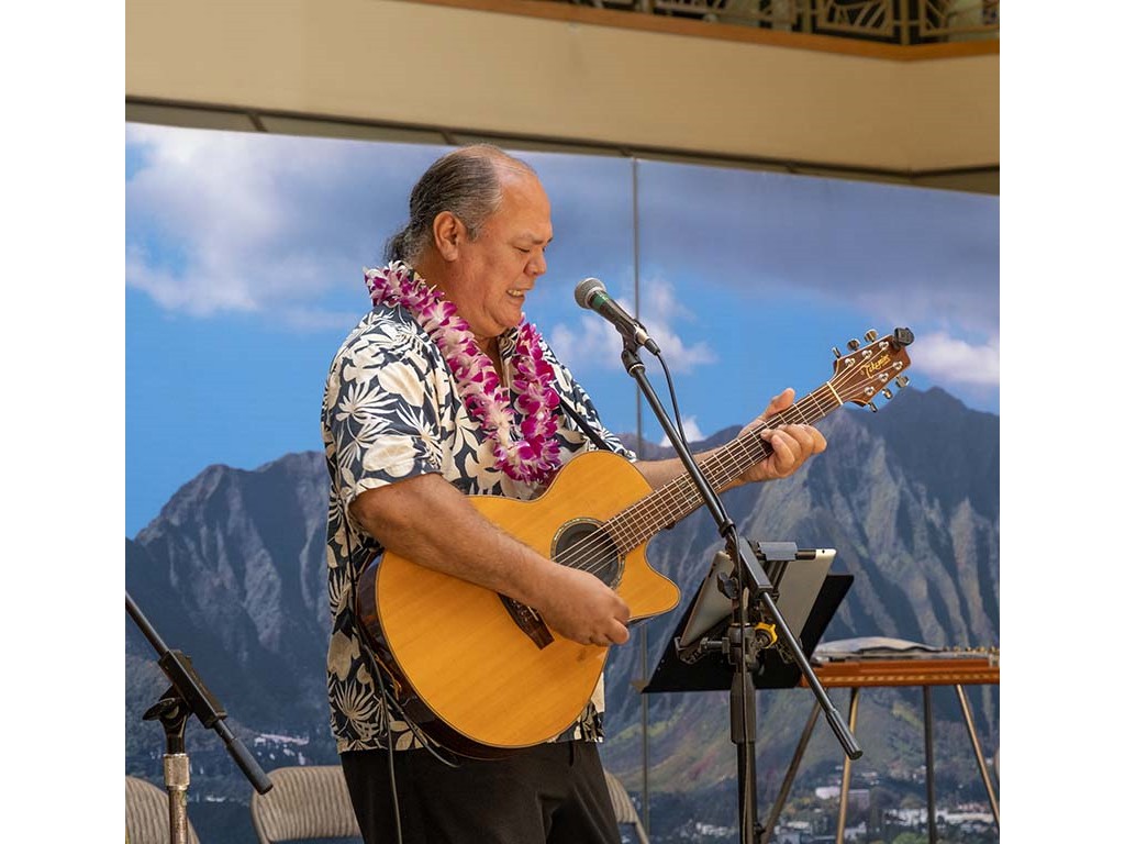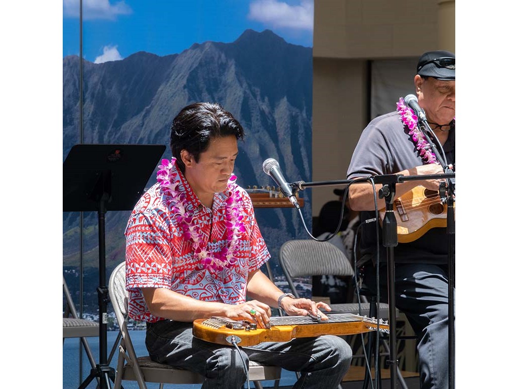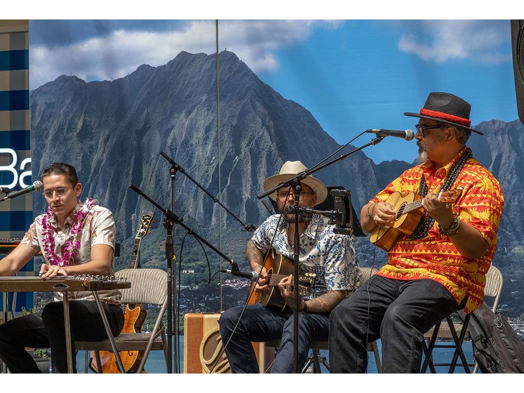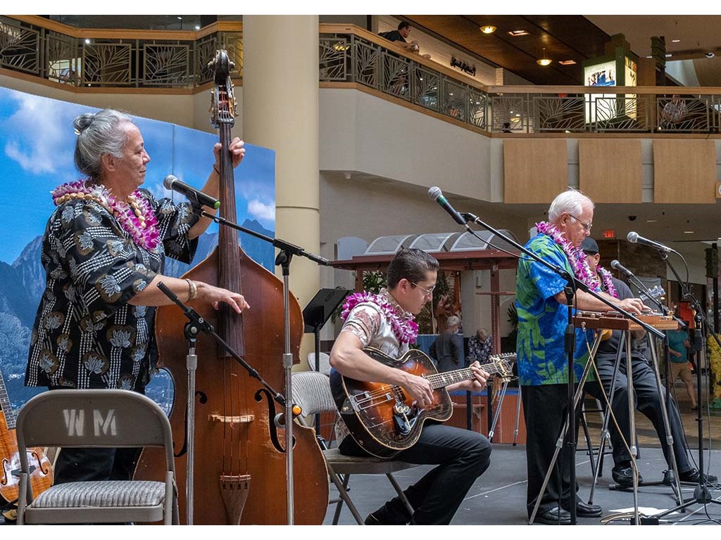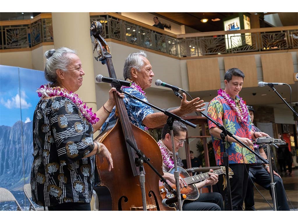 The Hawaiian Steel Guitar Festival at Windward Mall was held on Saturday, June 11, 2022, at the Windward Mall in Kane‘ohe. The festival featured steel guitarists Greg Sardinha and Po‘okela (Zachary Castro and Darrell Aquino), Kapono Lopes, Jeff Au Hoy, Steve Cheney, Joseph Zayac, Bobby Ingano, and Alan Akaka who also included NextGen steel guitarists Makamae Lyu-Napoleon, Isabella Bertelmann, Tai Misailidis, Pono Fernandez, and Joey Misailidis with Bobby Ingano assisting. Backup for some steel guitarists was provided by Helene Woodward on upright bass, Joseph Zayac on guitar, and Kaipo Asing on ‘ukulele.