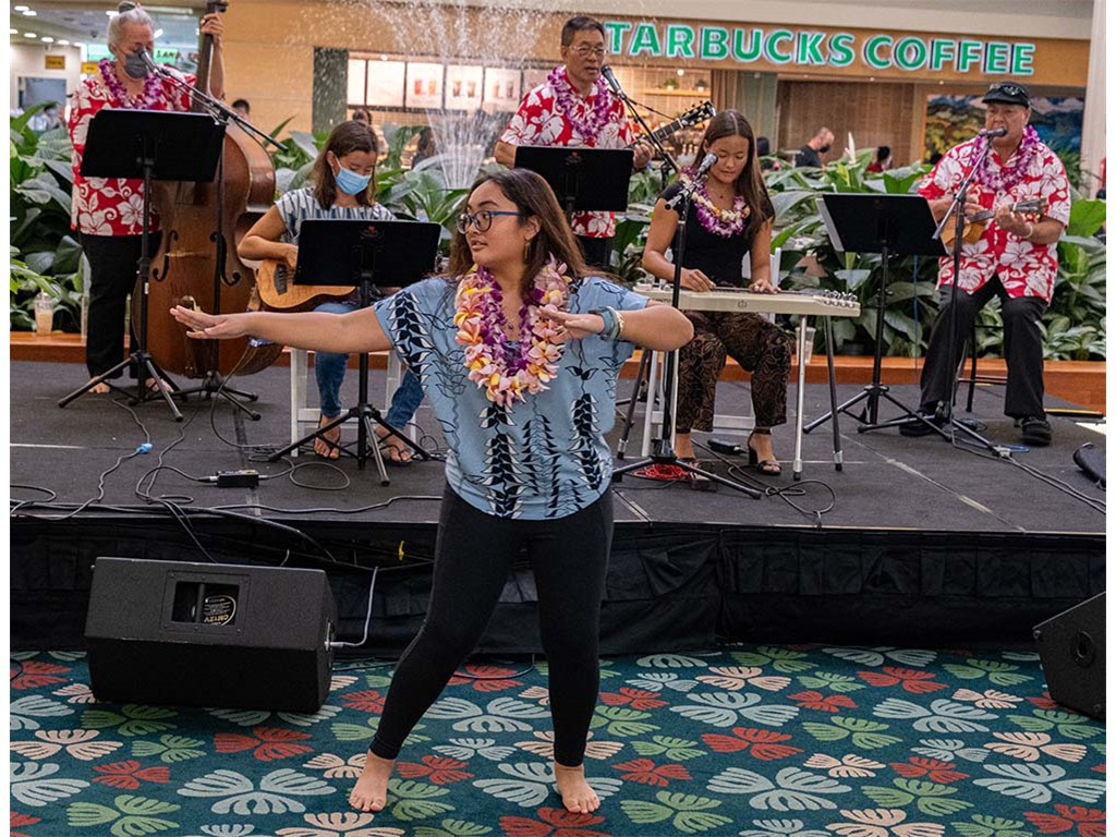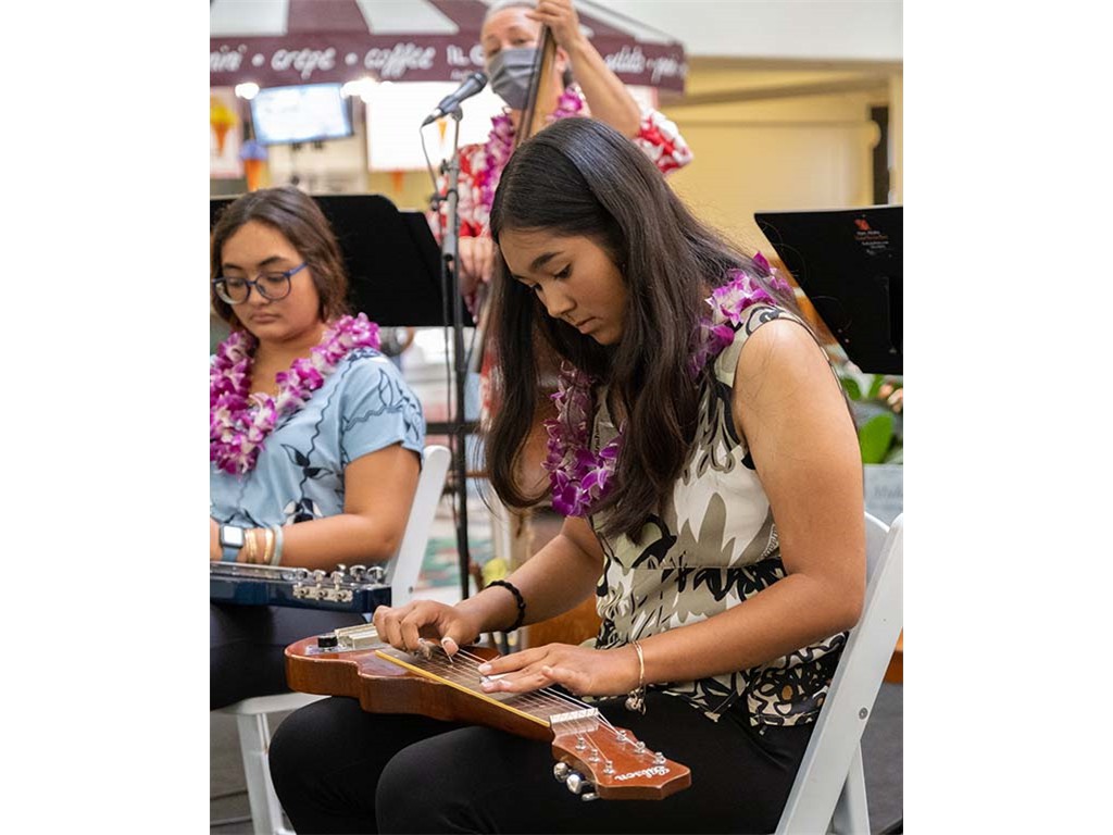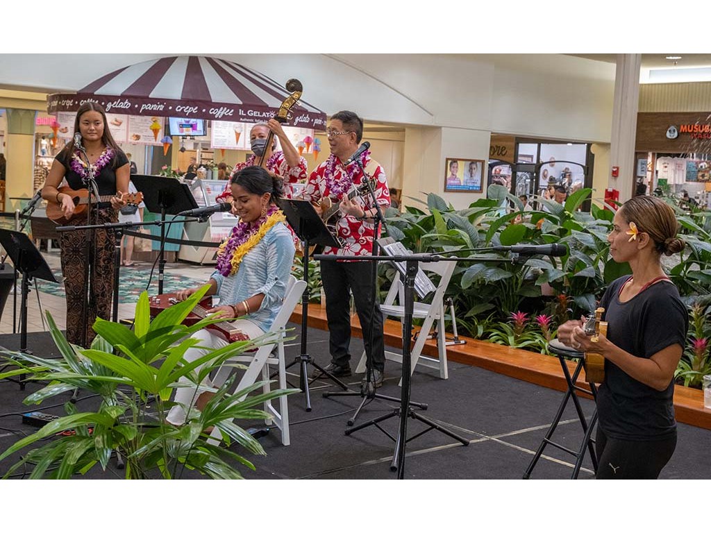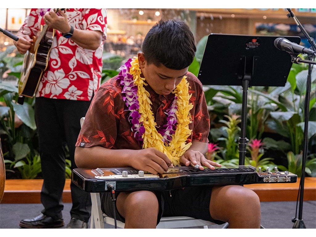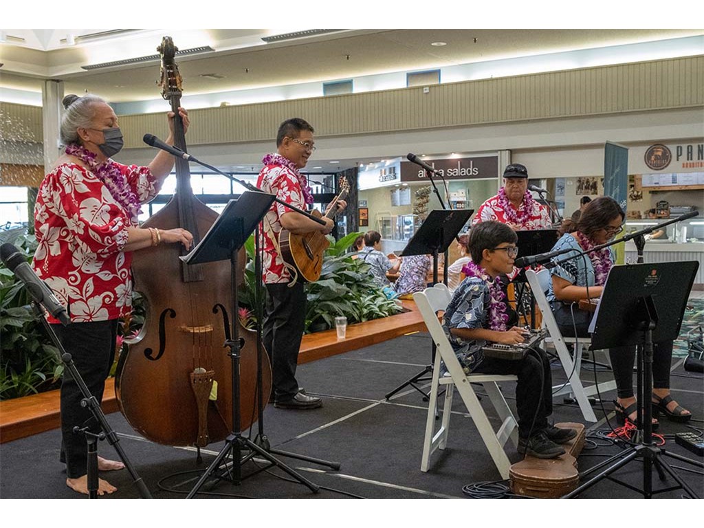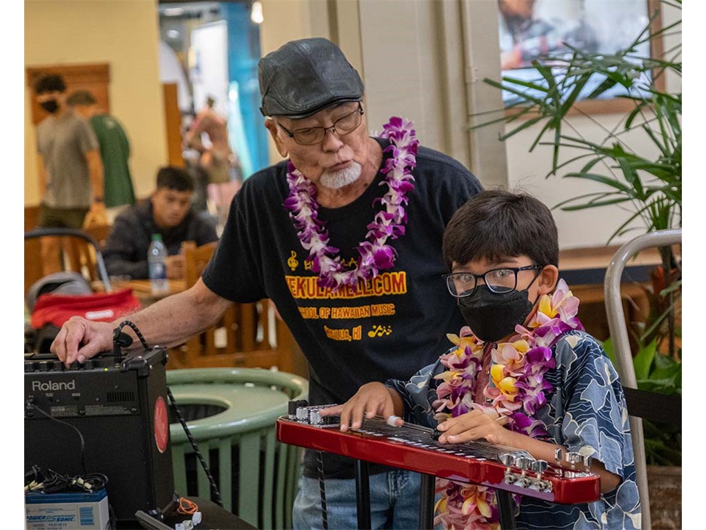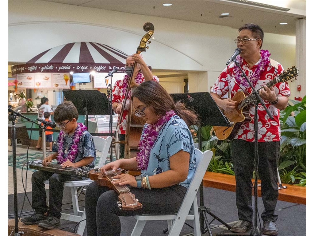 The 2022 Hawaiian Steel Guitar Festival - Keiki Kine at Kāhala Mall featured NextGen steel guitar players from Alan Akaka's Ke Kula Mele Hawai‘i School of Hawaiian Music in a two-hour performance. NextGen steel guitarists Reign Lyu, Enosa Lyman, Makamae Lyu-Napoleon, Isabella Bertelmann, Tai Misailidis, Joey Misailidis, and Malie Lyman were joined by Alan Akaka, Helene Woodward and Kaipo Asing.
