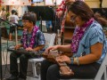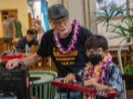 Claude Kutaka with another keiki festival guest at the hands-on demonstration table.