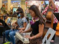 Claude Kutaka gives Reign some playing tips at the hands-on demonstration table.