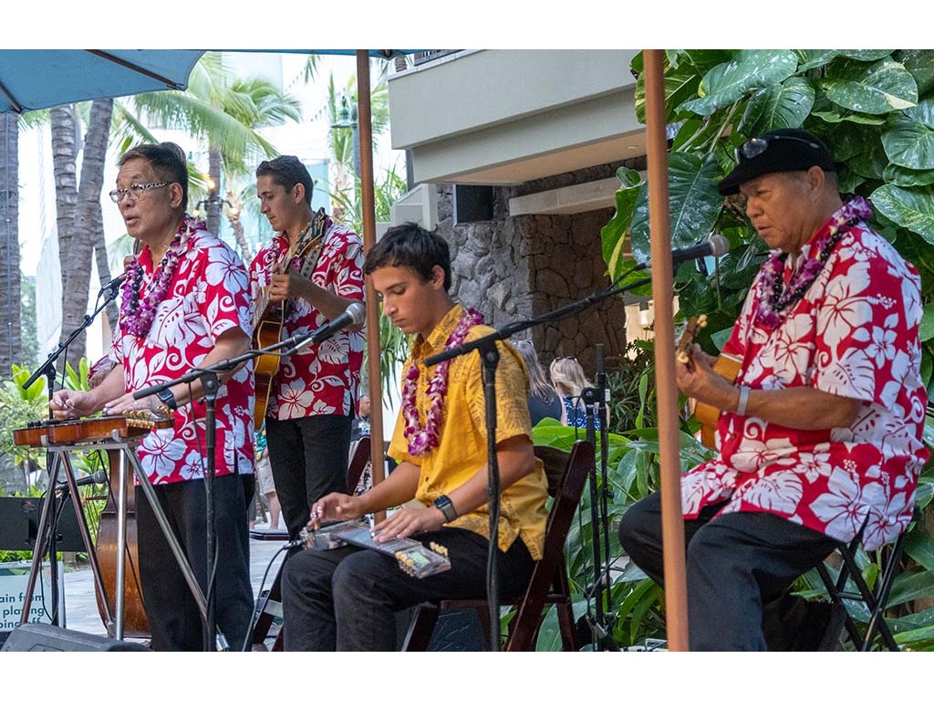 • Alan closes out the 4th Annual Waikīkī Steel Guitar Week and the 12th Annual Waikīkī Steel Guitar Festival. Also in picture: Helene Woodward, Joseph Zayac, Ethan Goore, and Kaipo Asing.
