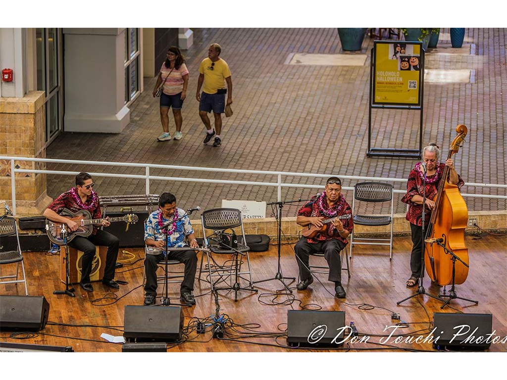 Featured steel guitarist Joel Katz with Preston Ako, Kalena Foster, and Koakane Mattos.