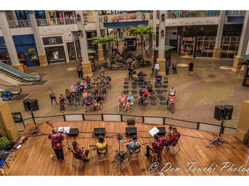 The 2022 Maui Steel Guitar Festival was held in two locations: The Shops at Wailea in Wailea on Saturday, October 15, and the Queen Ka‘ahumanu Center in Kahului on Sunday, October 16. Both festivals featured identical programs with O‘ahu steel guitarists Alan Akaka, Bobby Ingano, Greg Sardinha, Joseph Zayac, and Maui steel guitarists Geronimo "Geri" Valdriz, Konapiliahi Lau, and Joel Katz. NextGen keiki steel guitarists Mālie Lyman, Joey Misailidis and Tai Misailidis also performed. Backup musicians Kaipo Asing, Joseph Zayac and Helene Woodward assisted, and several hula dancers, including Kapuanani, Kathy Collins, Verdine Kong, and Maile Keawe Bryan, offered their hula to festival guests.