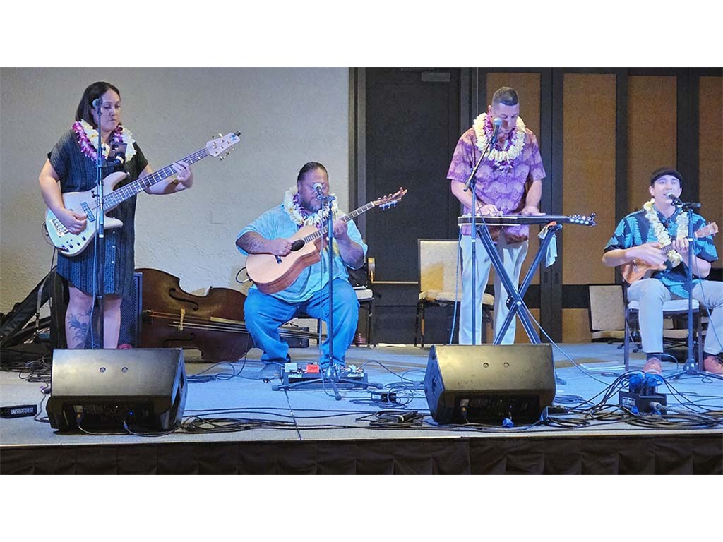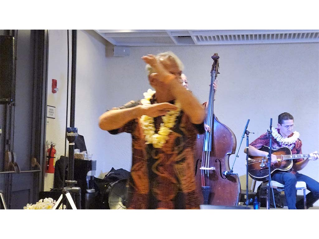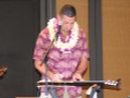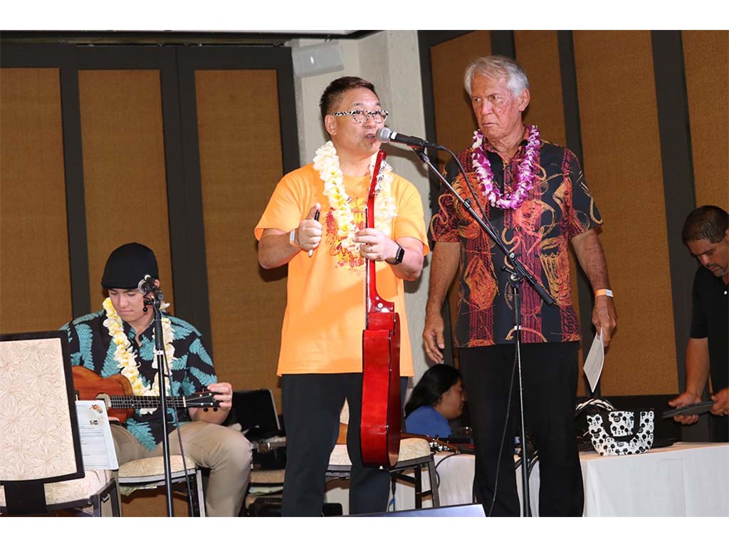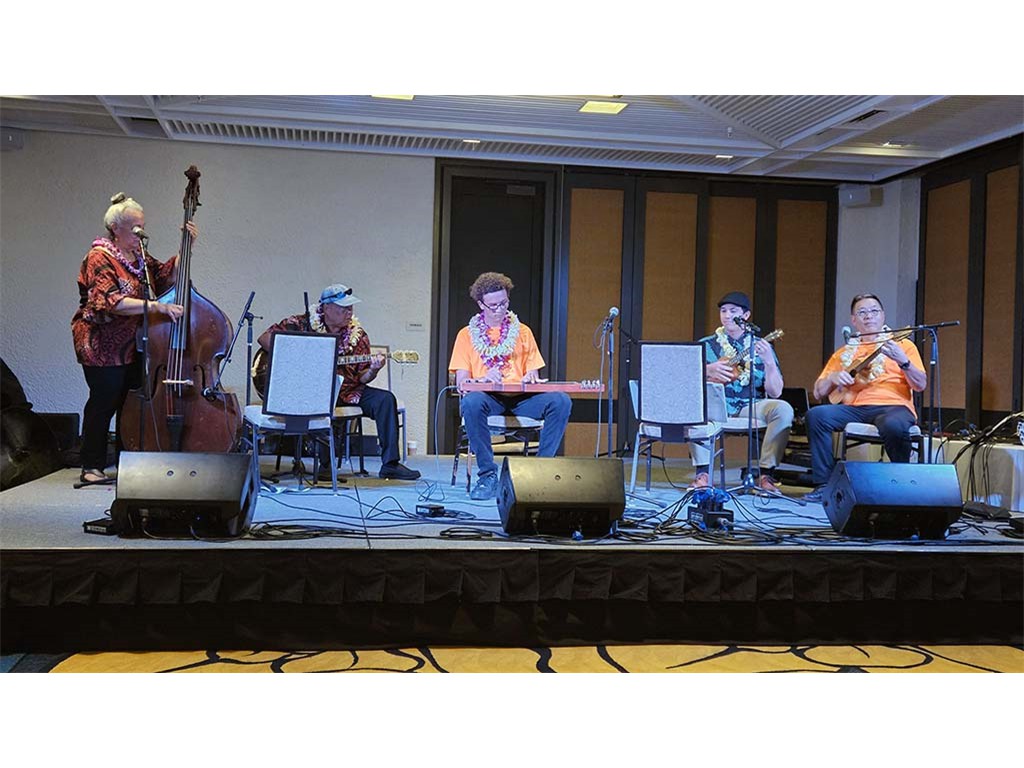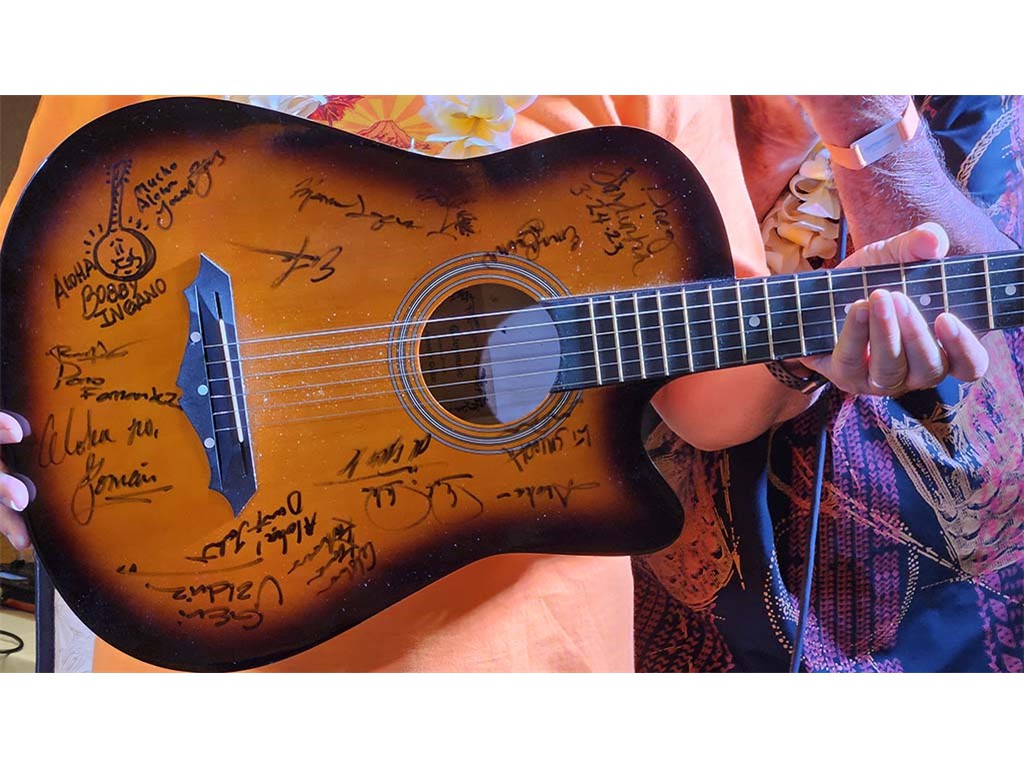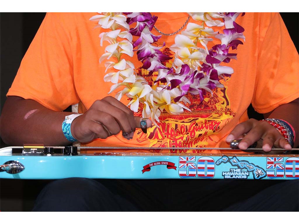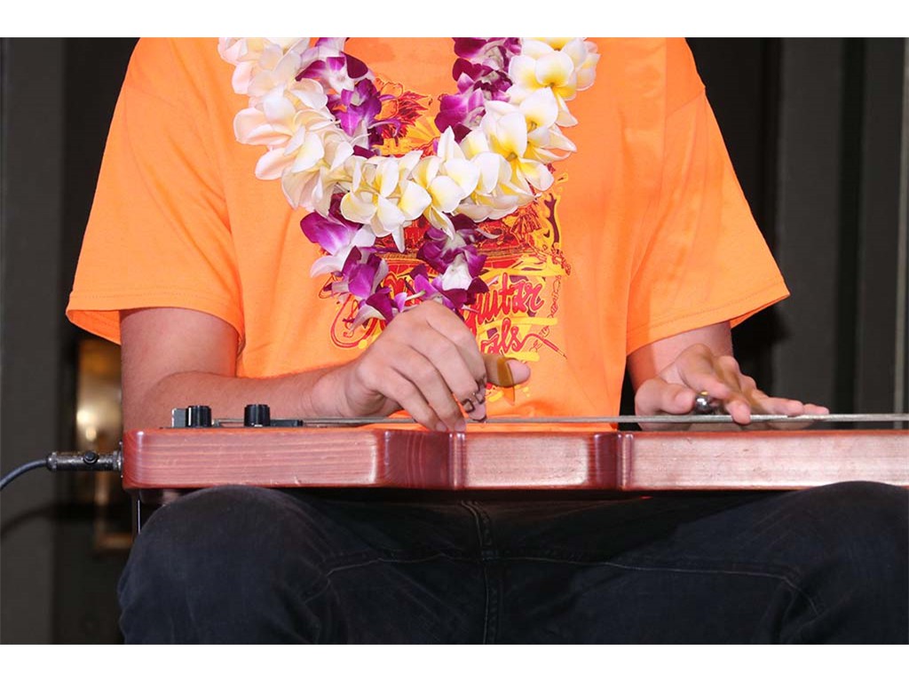 Daniel Tremblay conducted the hands-on experience and displayed an inexpensive guitar that he converted to function as a steel guitar. This guitar and the process he uses were presented at the Friday workshop, and Kapono Lopes was so impressed with the guitar that he asked to play it during his performance. The guitar, autographed by all participating musicians, was auctioned off with proceeds going to HIMELE to support its activities.