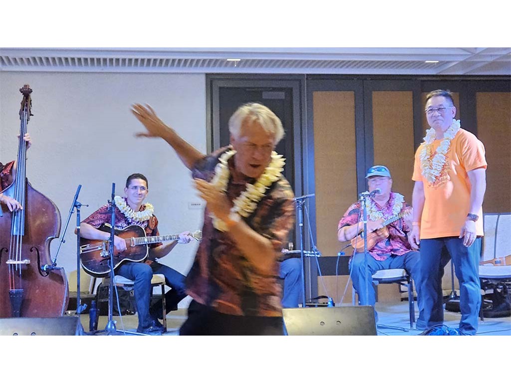 Alan shares a closing hula, 'ʻUlupalakua' with Joseph, Bobby, and Kaipo.
