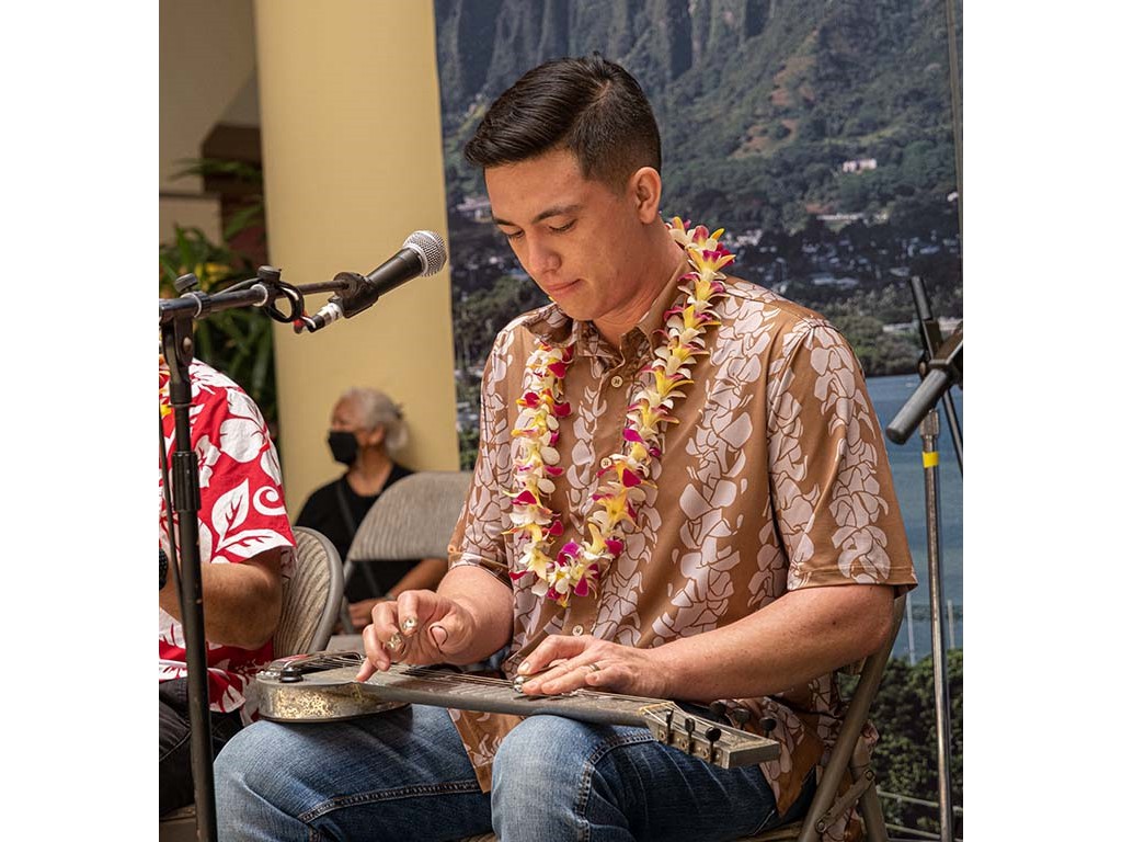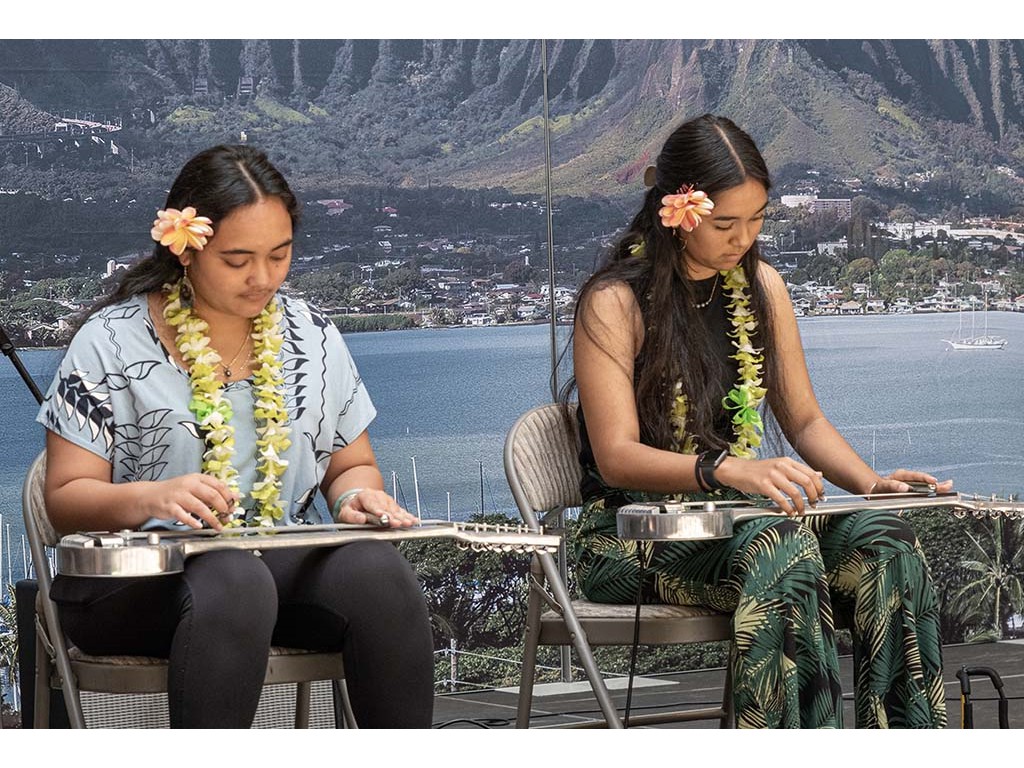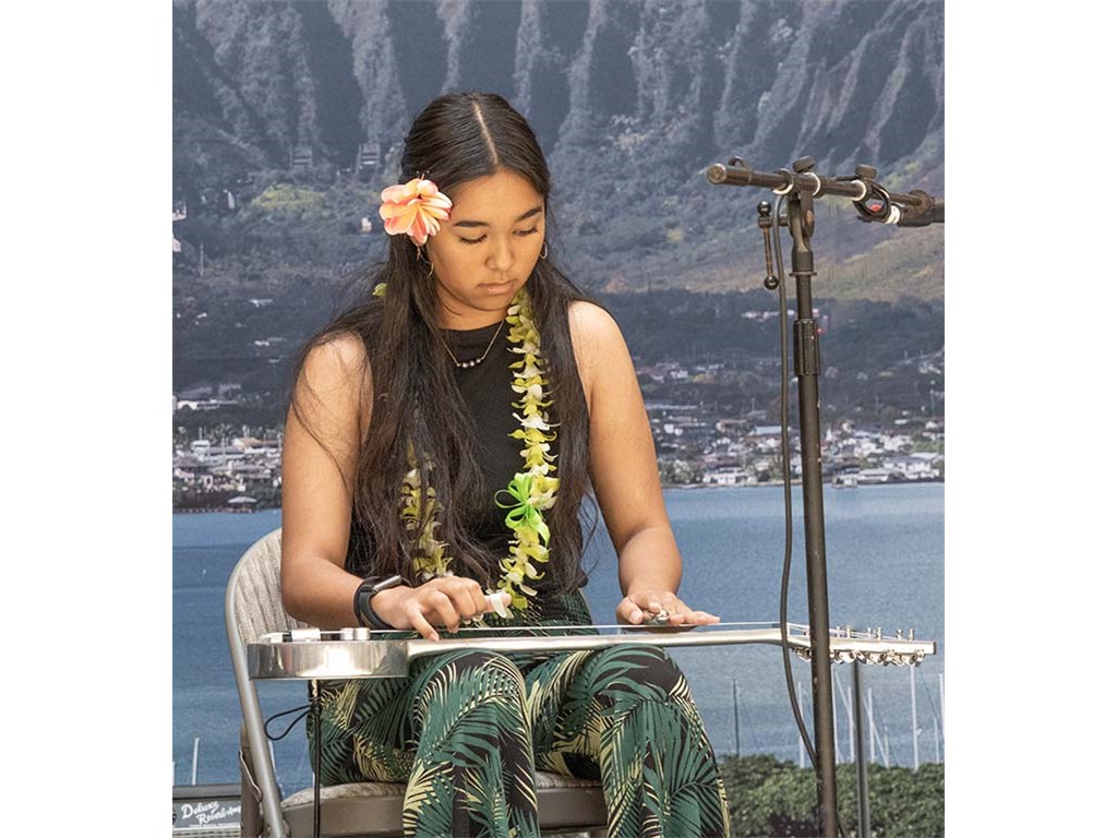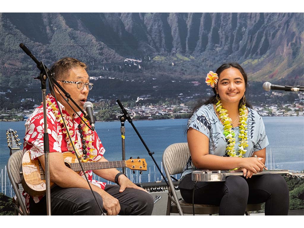 Featured NextGen steel guitarist Makamae Lyu-Napoleon with Alan Akaka.