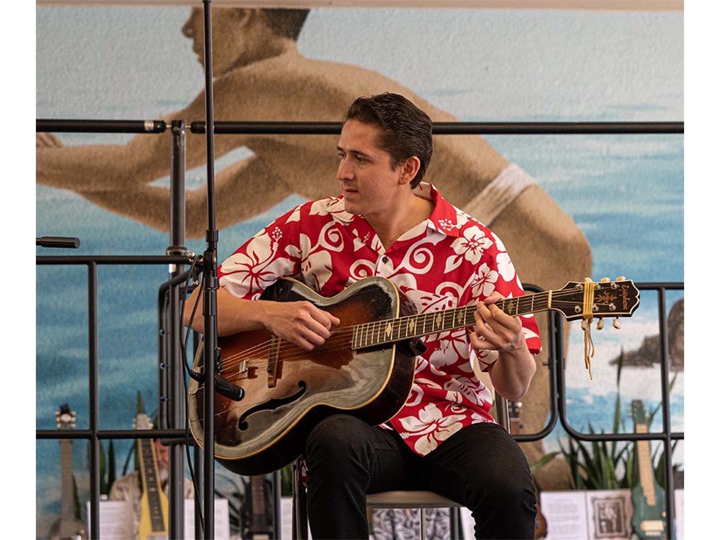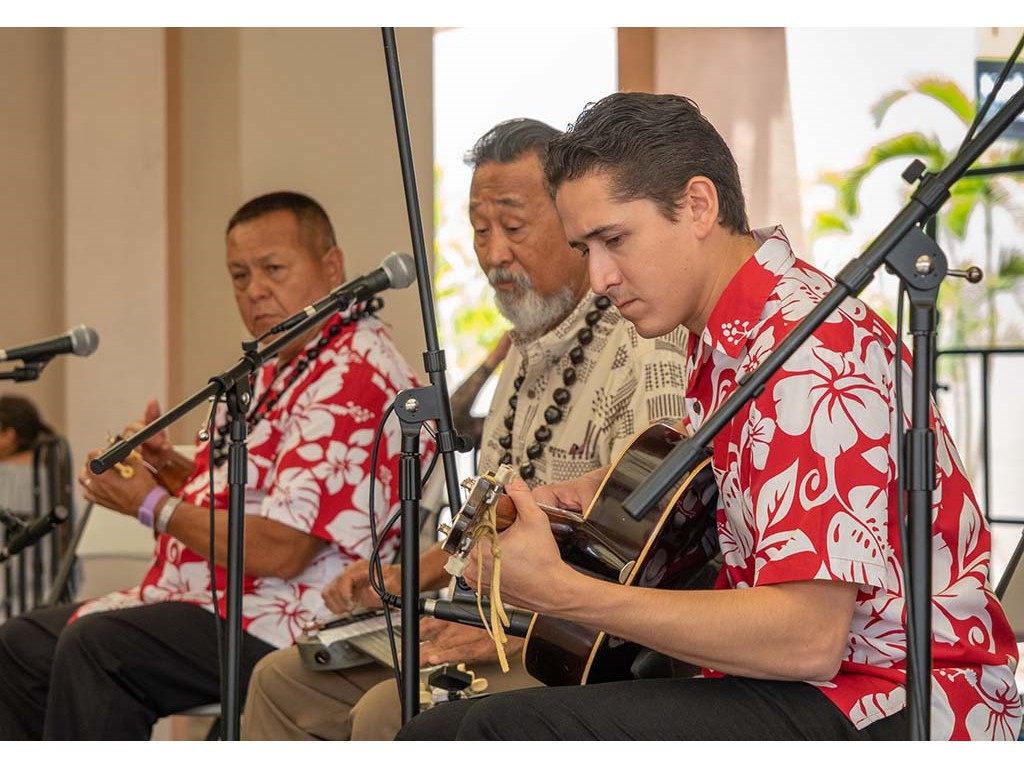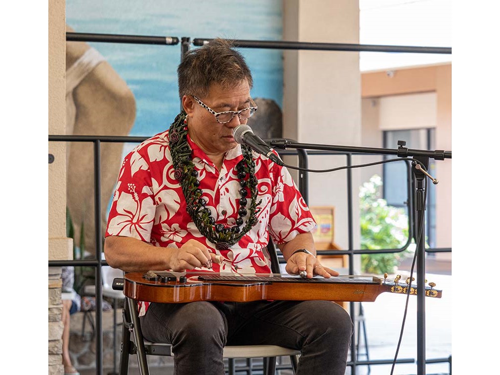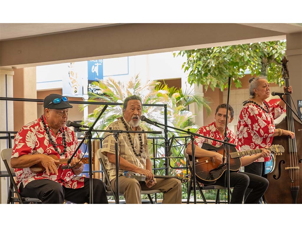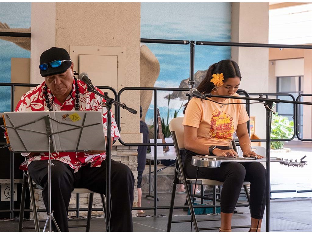 The Kukui Grove Center festival featured steel guitarists Geronimo "Geri" Valdriz, Greg Sardinha, NextGen steel guitarists Makamae Lyu-Napoleon, Isabella Bertlemann, Enosa Lyman, Tai Misailidis and Joey Misailidis, steel guitarists Sebastian Mūller, Mālie Lyman, Bobby Ingano with guest artist Heu‘i Bandmann, and Alan Akaka.