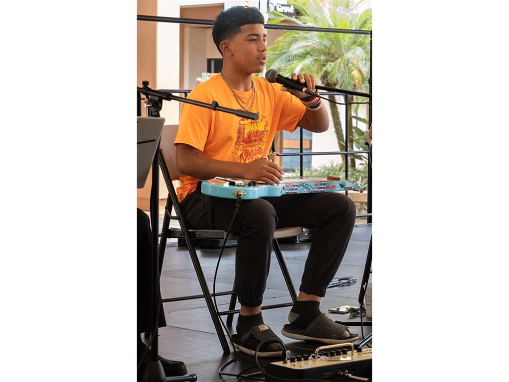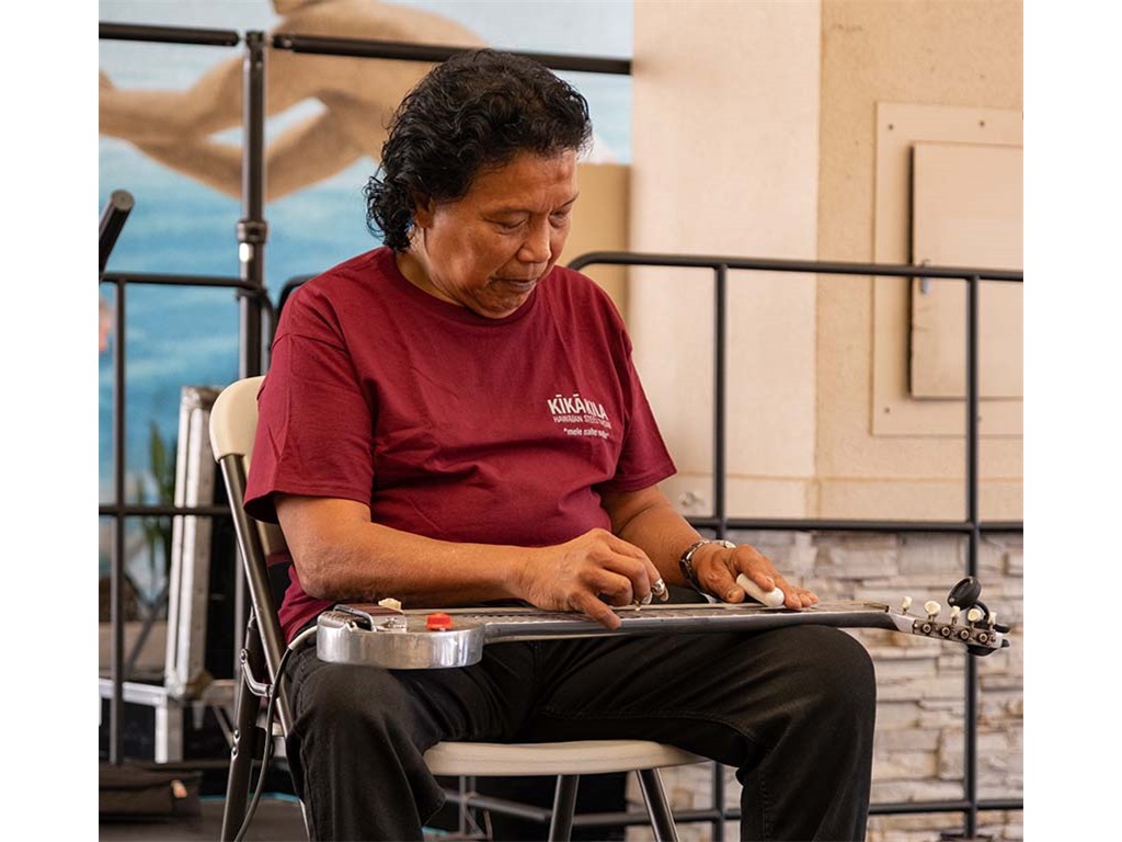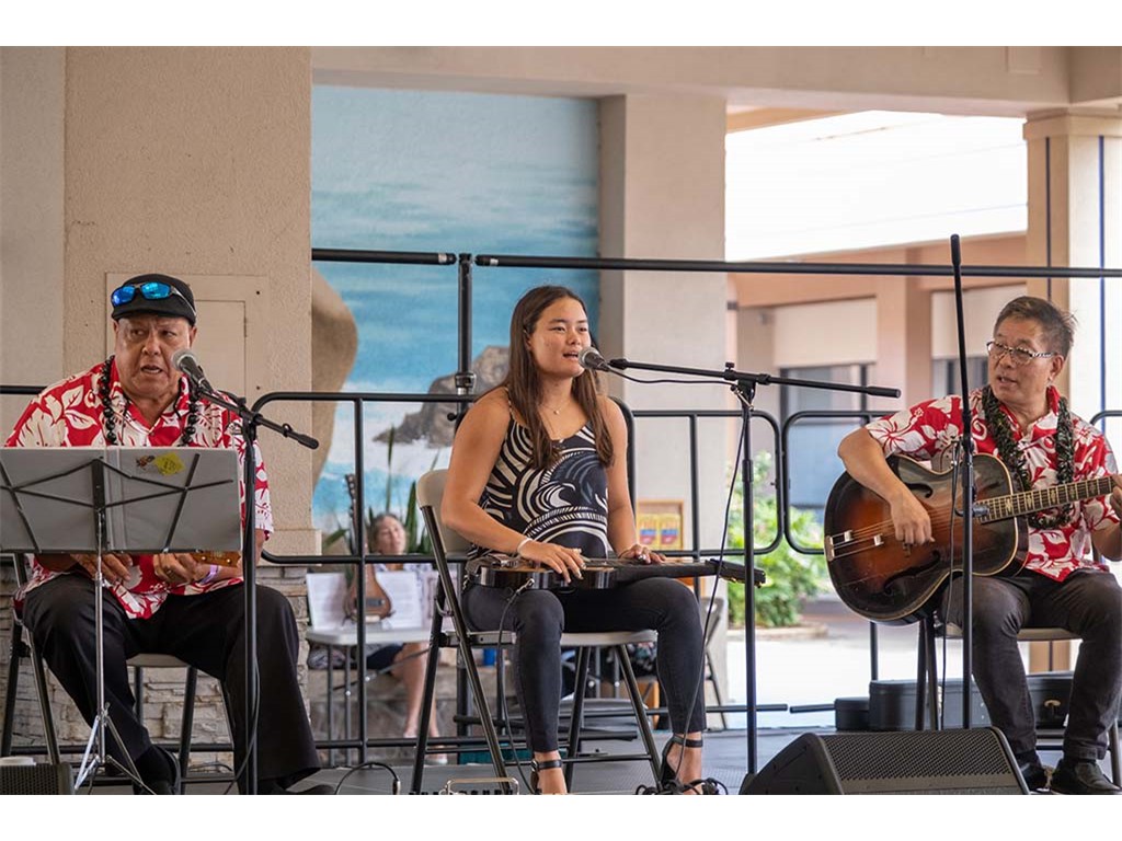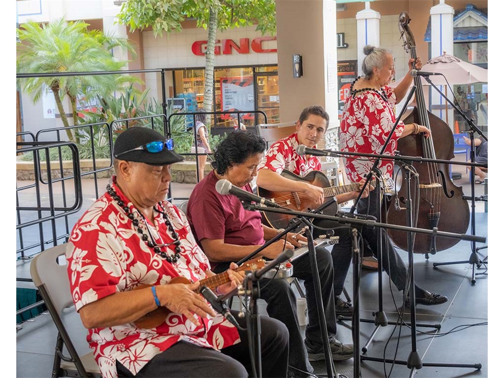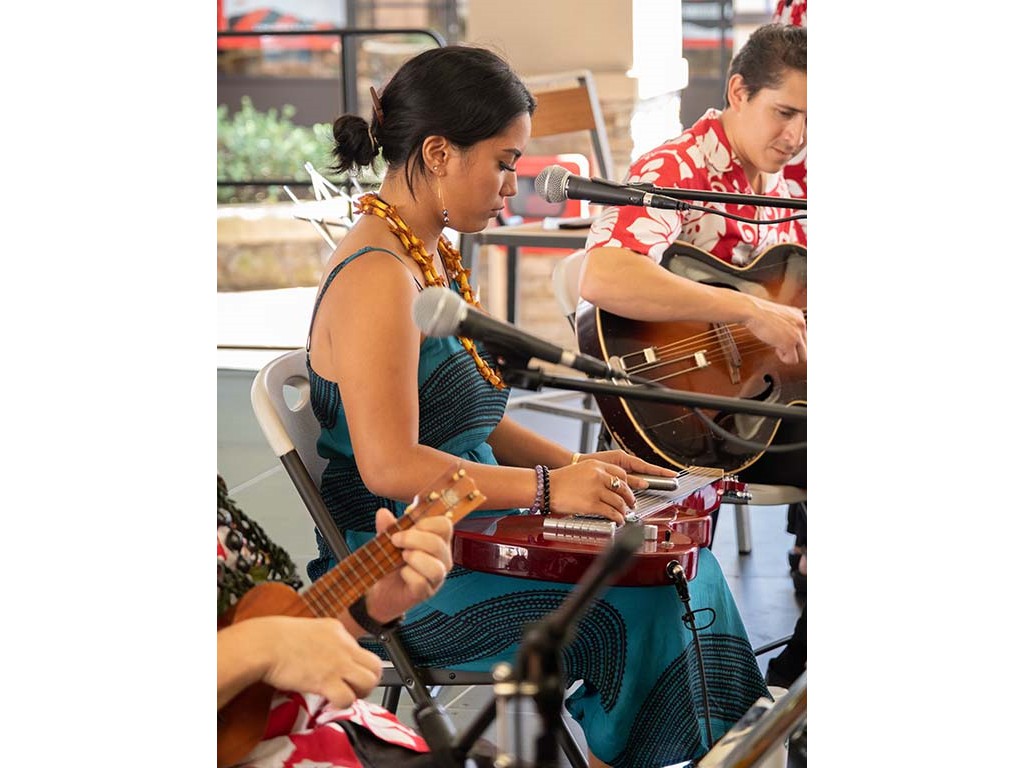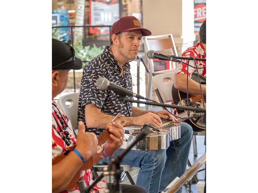 The Kukui Grove Center festival featured steel guitarists Geronimo "Geri" Valdriz, Greg Sardinha, NextGen steel guitarists Makamae Lyu-Napoleon, Isabella Bertlemann, Enosa Lyman, Tai Misailidis and Joey Misailidis, steel guitarists Sebastian Mūller, Mālie Lyman, Bobby Ingano with guest artist Heu‘i Bandmann, and Alan Akaka.