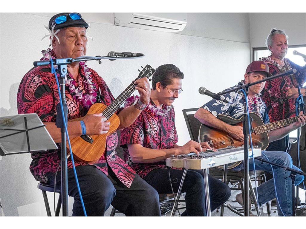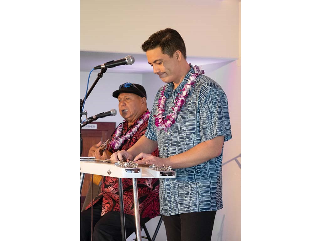 • Bobby Ingano supporting the keiki on his steel guitar.