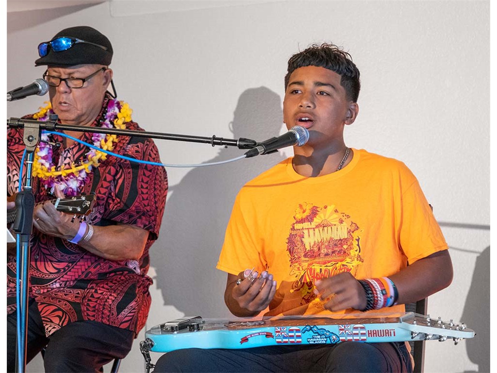 • NextGen steel guitarist Tai Misailidis with Kaipo Asing.