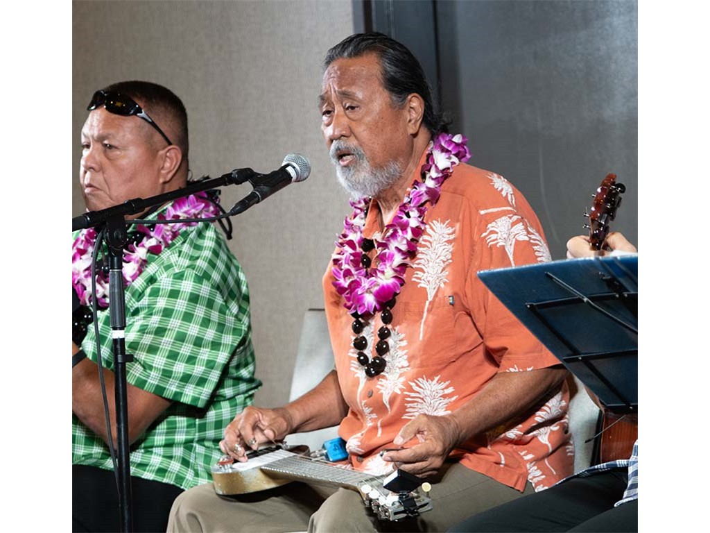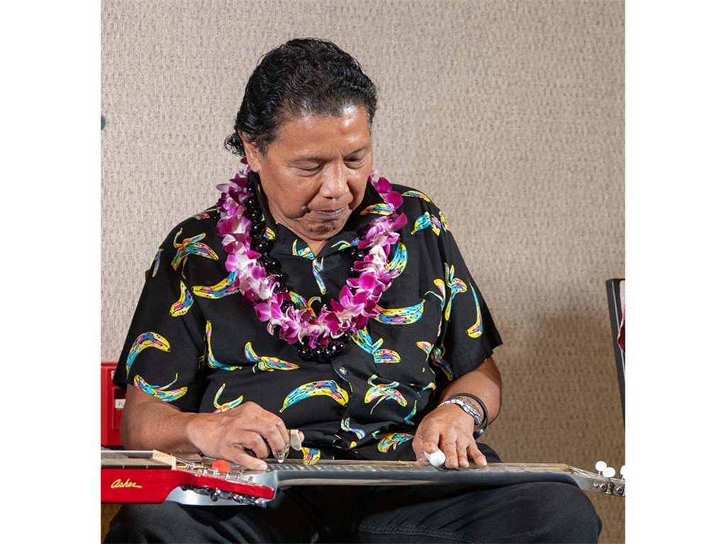 Featured steel guitarist Geronimo ''Geri'' Valdriz with Helene Woodward, Kaipo Asing, Alan Akaka, and Kaipo Lindsey.