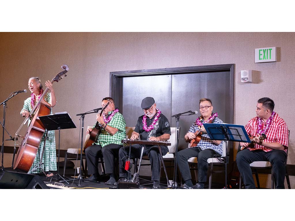 Featured steel guitarist Mālie Lyman with Helene, Kaipo Asing, Bobby, and Kaipo Lindsey.