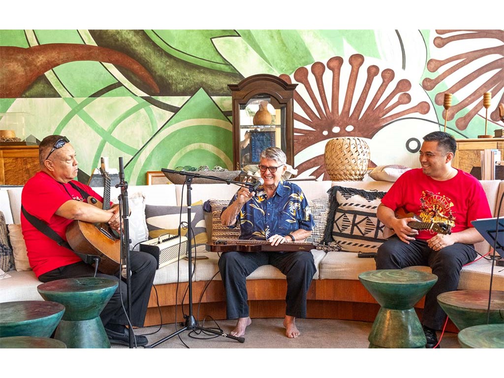 Originally planned for the resort's outdoor Surf Shack, open stage performances were moved indoors to the Hale Iīiki cultural center. Open stage performers included Barbara Bones, Vickie Van Fechtmann, Jim Dowiat, Daniel Toft, and NextGen steel guitarists. Backup accompaniment was provided by Bobby Ingano, Alan Akaka, Kaipo Asing, Kaipo Lindsey, Joseph Zayac, Larry Holu, and Helene Woodward.