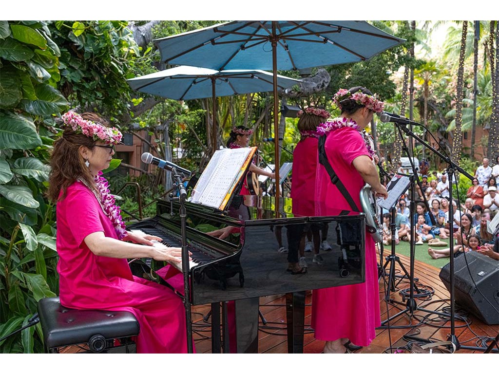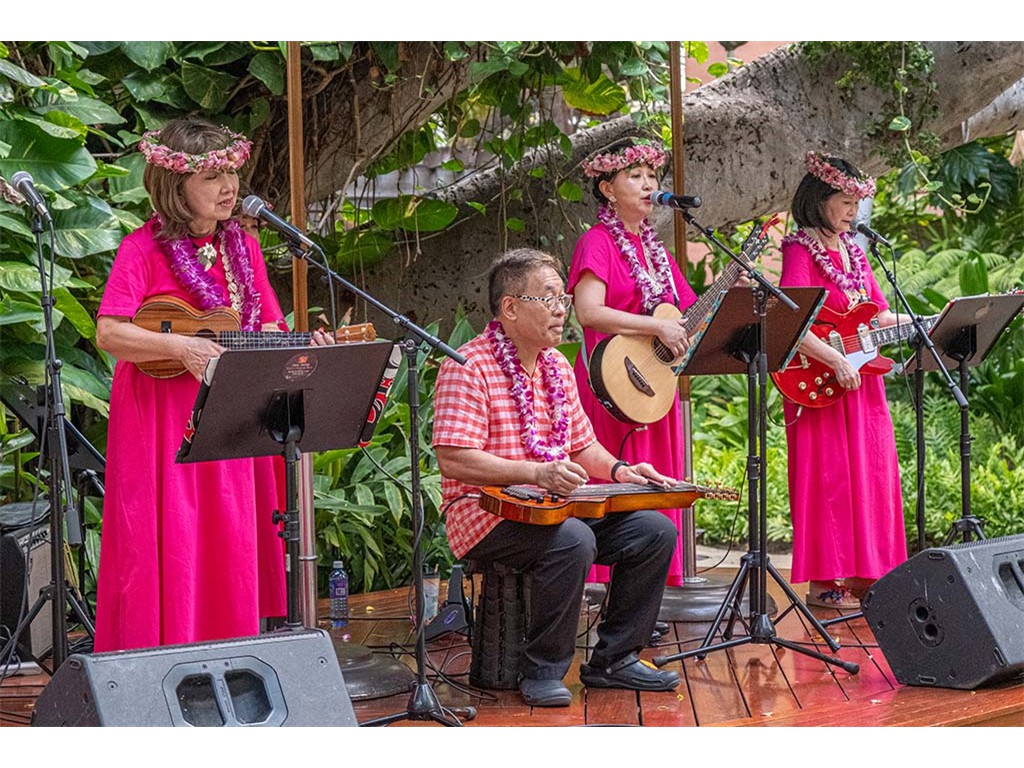 • Hula dancers Keiko Azumi, Tomoko Yoda, Kumu Kamaile Sachiko Tanaka, and Akemi Mutou of Ona Ona O Kamaile.