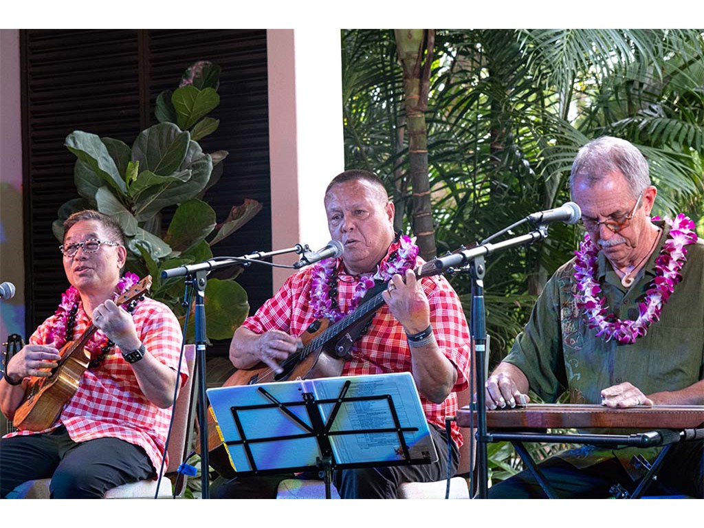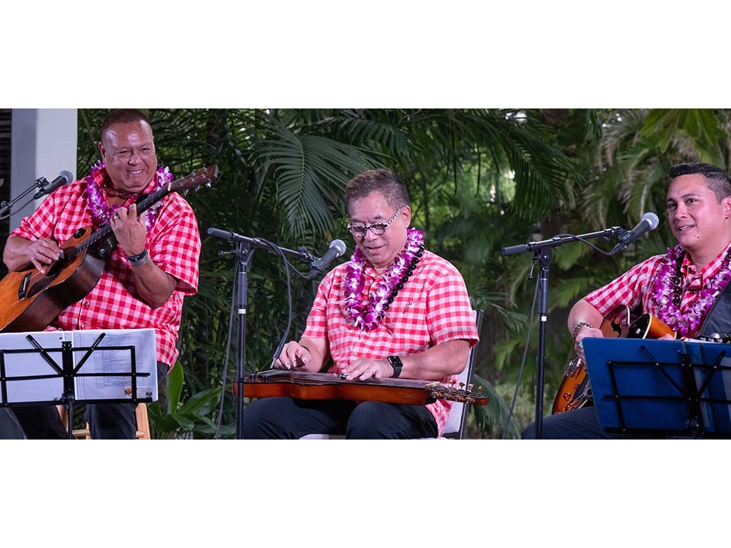 Featured steel guitarist Konabob Stoffer with Alan Akaka and Kaipo Asing.