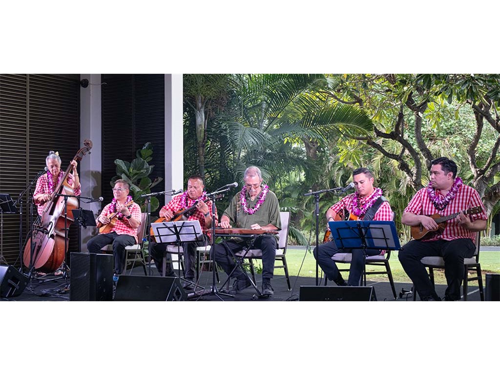 Featured steel guitarist Devin Nakahara with Dylan Nakahara, Alan Akaka, Kaipo Asing, David Woodward, and Kaipo Lindsey providing backup.