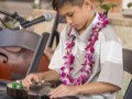 Hiʻipoi Lindsey with Tai Misailidis, David Woodward, Alan Akaka, Ethan Speyer, and Kaipo Lindsey and Jake Fernandez in the background.