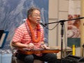 Claude Kutaka observing another festival guest on the steel guitar.
