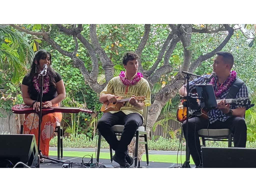 Featured steel guitarist Ethan Goore with Kaipo Asing and David Woodward.