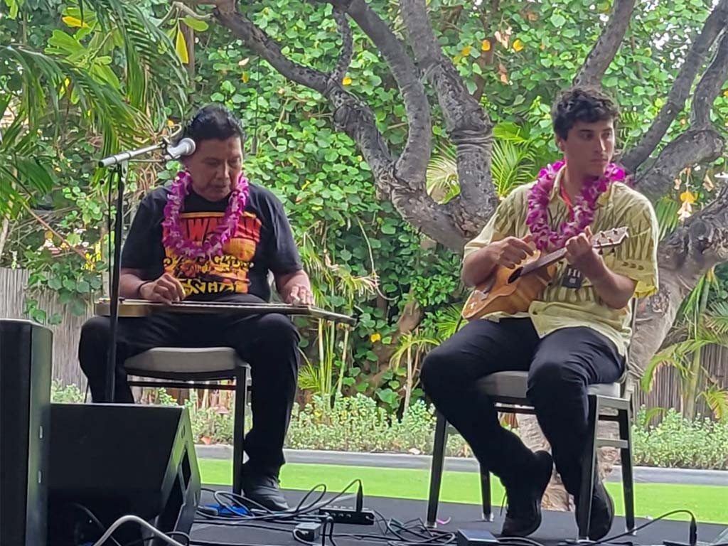 Featured steel guitarist Greg Sardinha with Kaipo Asing.