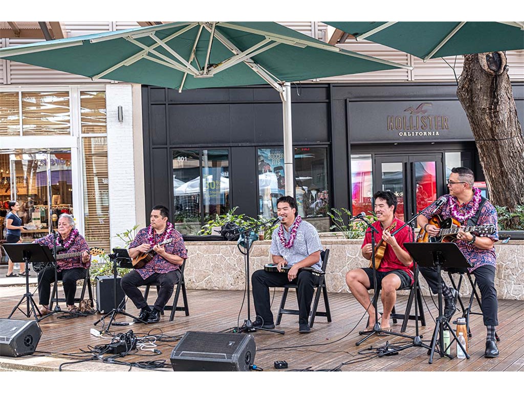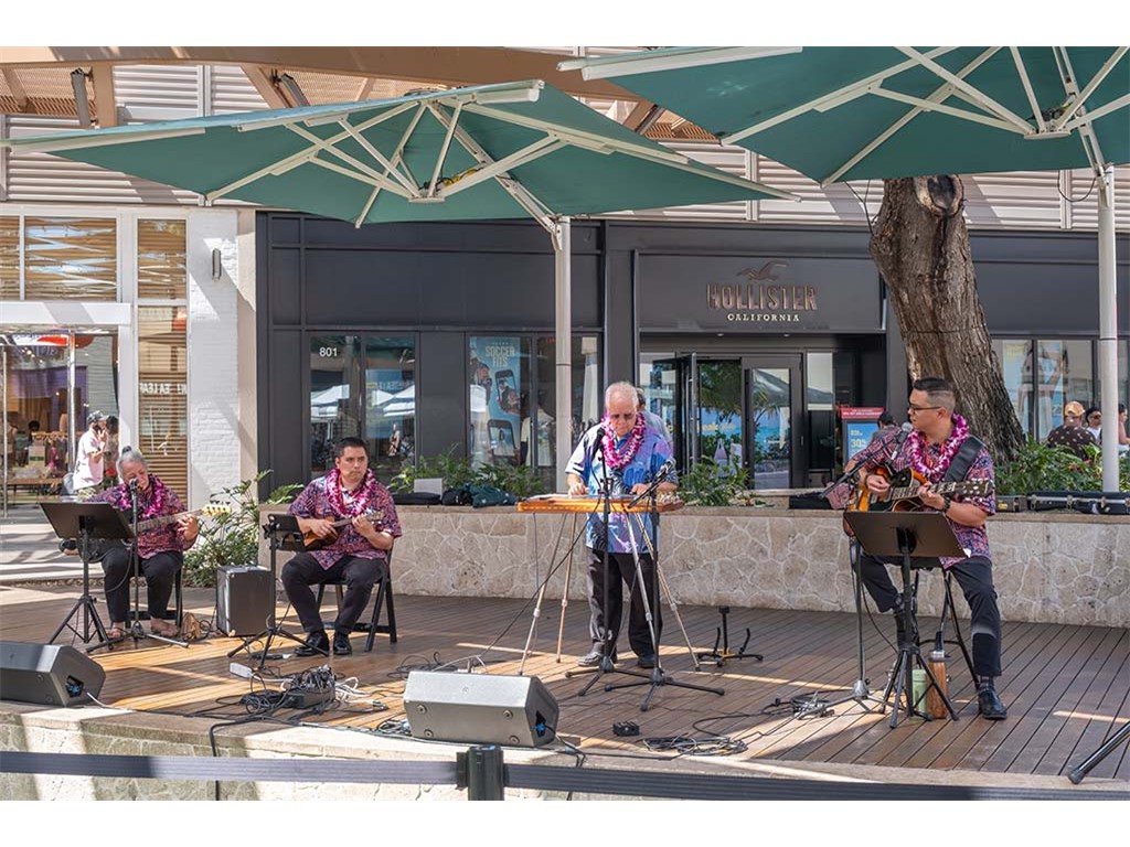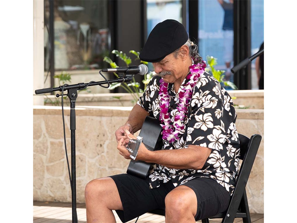 Featured Steel Guitarist Bobby Ingano with Helene Woodward, Kaipo Lindsey, Alan Akaka, and David Woodward.
