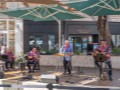 Backup musicians Helene Woodward and Kaipo Lindsey.